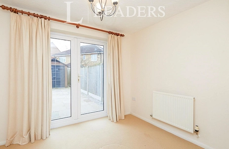 Carpeted with French doors out to garden, double doors in lounge