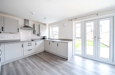 KITCHEN/DINER: a stunning kitchen well equipped with brand new appliances including, electric oven/hob, integrated dishwasher, fridge/freezer as well as a range of cupboard units. French style patio doors open from the kitchen onto the spacious rear garden, perfect for summer dining! (4.95m X 3.15m)