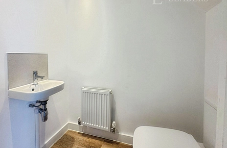 A three-piece family bathroom, set on the first floor. This modern wash room includes a bath, sink, toilet and shower above the bath.