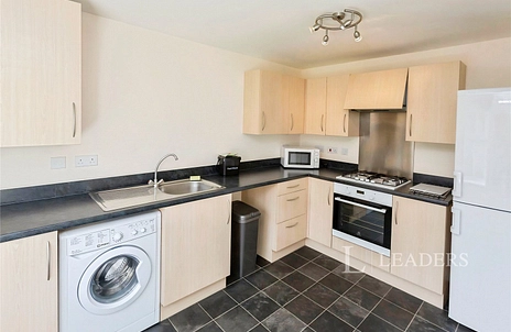 Property description: Entrance hallway, fitted kitchen with appliances including; washing machine, full size fridge / freezer, oven / hob. Living and dining room with L shaped sofa, dining table and chairs, French doors opening to rear garden.