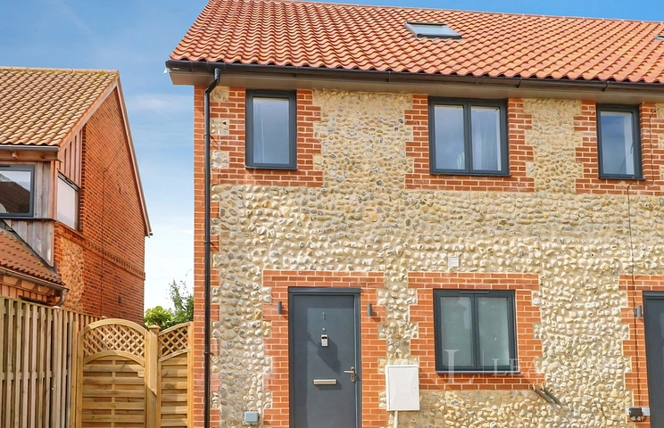Leaders are pleased to present this Furnished three-bedroom, three-bathroom modern terraced house in Docking, offered on a room-only basis, featuring high-end contemporary interiors, open-plan living with fully equipped kitchen and utility room, underfloor heating via air source heat pump, private gardens, parking, and convenient access to King’s Lynn and the North Norfolk coast. EPC Rating: B. Council Tax Band: C