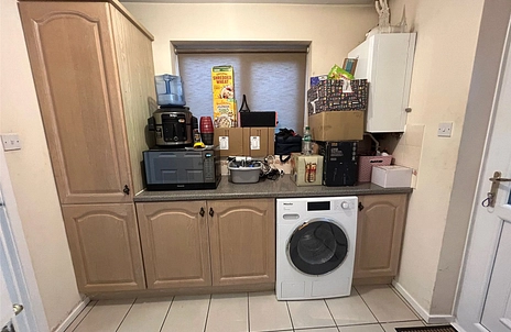 UTILITY ROOM Separate utility room with additional units for storage and a freestanding washing machine, a UPVC double glazed window, tiled flooring and internal access into the garage.
