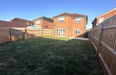 The ground floor comprises a well-appointed kitchen, separate dining room, WC, and a spacious lounge featuring French doors that open onto the garden. Upstairs, the property offers four generous double bedrooms and a family bathroom, with the master bedroom benefiting from an en-suite.