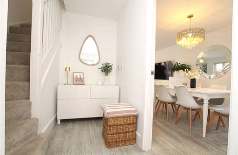Upon entering the property, you are welcomed by an entrance hall leading to a convenient downstairs WC and cloakroom. The generous reception room provides ample space for a comfortable family living area, while to the rear of the property the modern open-plan kitchen is fully fitted with a range of eye- and base-level units. French doors open directly onto the enclosed rear garden, creating a bright and practical space for everyday living and entertaining.